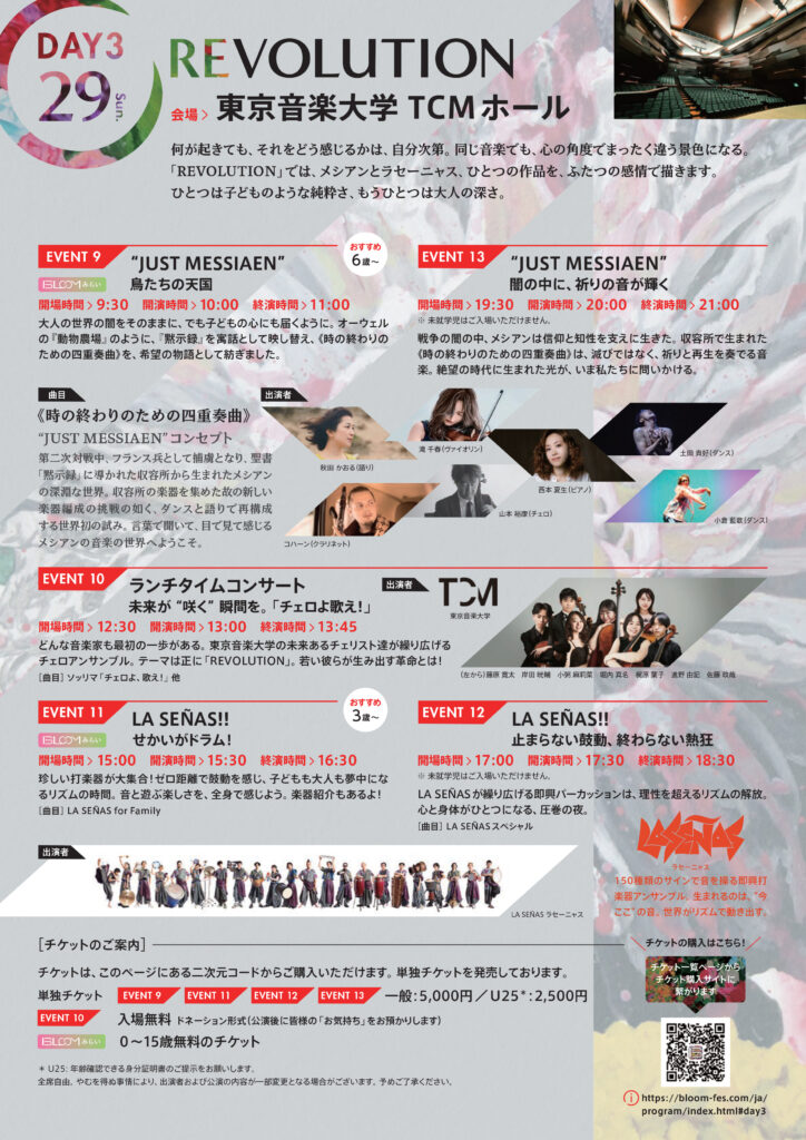 ✨ 主催・滝千春さんよりメッセージ 「皆さんの毎日に音楽、そして芸術の種が根吹き、大きな花が咲かせられるような、心温まるフェスティバルを目指しております。「15歳まで無料イベント」も沢山ありますよ!ぜひ遊びに来てください!」