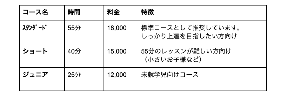 🎵レッスンコースと料金(税別)