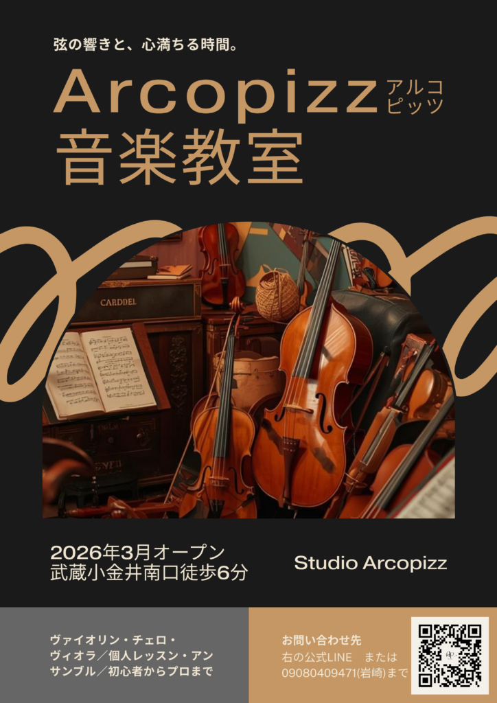 その想いに応えるべく、この度、2026年3月より弦楽音楽教室「Arcopizz(アルコピッツ)音楽教室」を開校いたします!