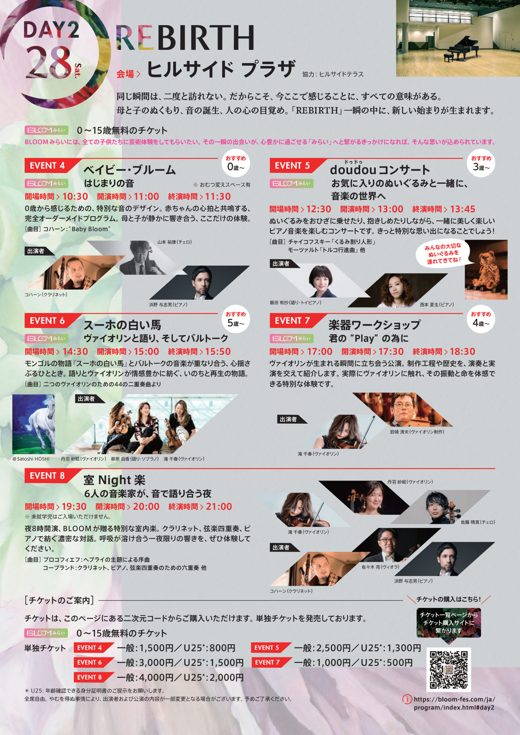 ✨ 主催・滝千春さんよりメッセージ 「皆さんの毎日に音楽、そして芸術の種が根吹き、大きな花が咲かせられるような、心温まるフェスティバルを目指しております。「15歳まで無料イベント」も沢山ありますよ!ぜひ遊びに来てください!」